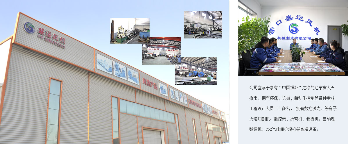 營(yíng)口盛運(yùn)風(fēng)機(jī)機(jī)械制造有限公司是一家從事各類風(fēng)機(jī)機(jī)械、除塵系統(tǒng)的研發(fā)、設(shè)計(jì)、制造為主的專業(yè)生產(chǎn)企業(yè)。公司座落于素有“中國鎂都”之稱的遼寧省大石橋市,